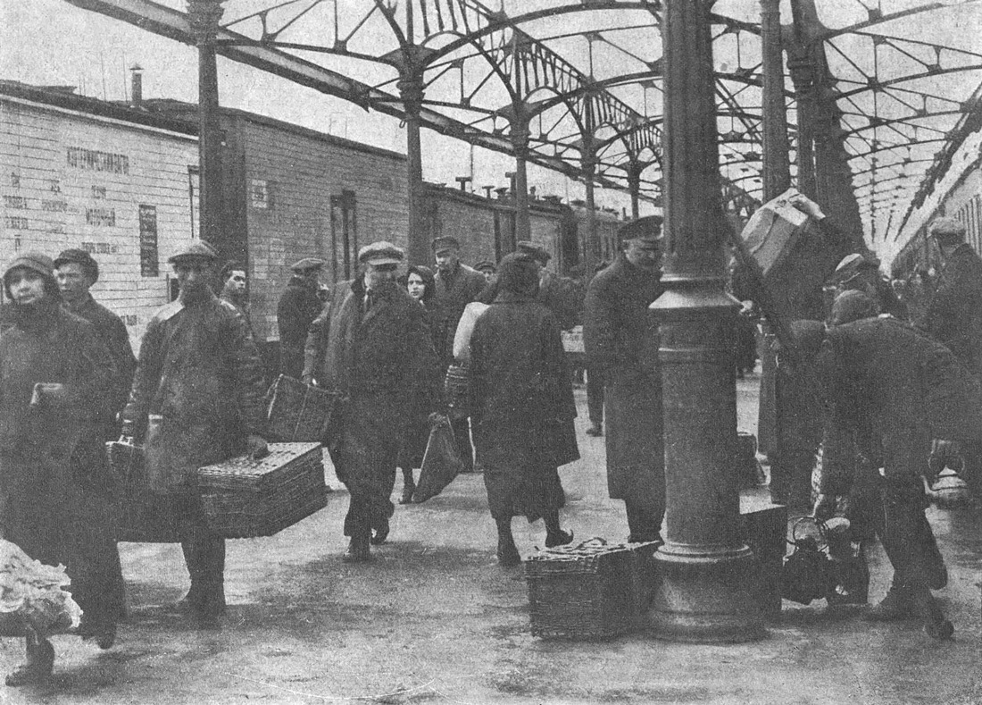 В людских протоках на вокзале переселенцы затесаны густо. Переселенцев обступают московские толпы, ждущие поездов на Урал.