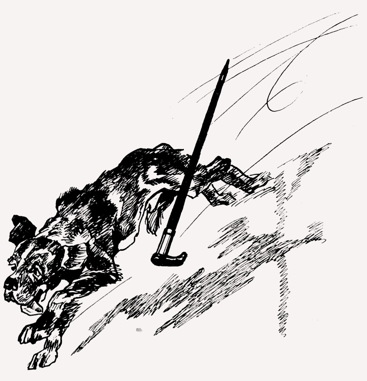 Поджав хвост, болтая ушами, улепетывает к своему дому Шарик, захлебываясь от удовольствия, от предстоящего скандала и сумятицы, лает Джим. К нему бежит, расставив руки, его жирная хозяйка. Нерон ворчит глухо, и нехотя переходя с места на место, пытается уберечься от летящих в него камней.