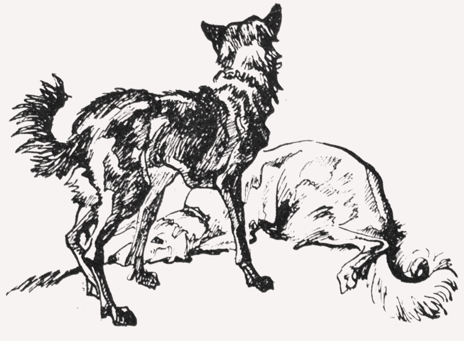 Но режущий, заливший варом удар под брюхо валит его на спину. Сквозь кровяной туман Дружок видит над собою запененную широкую морду Нерона. Взметнувшись брюхом вверх, Дружок хватает Нерона за шею. Они сливаются в единый вьющийся клуб костей и мускулов, захлебываясь, взвизгивая, урча, рвут друг друга в самозабвенной, захлестнувшей их ненависти.