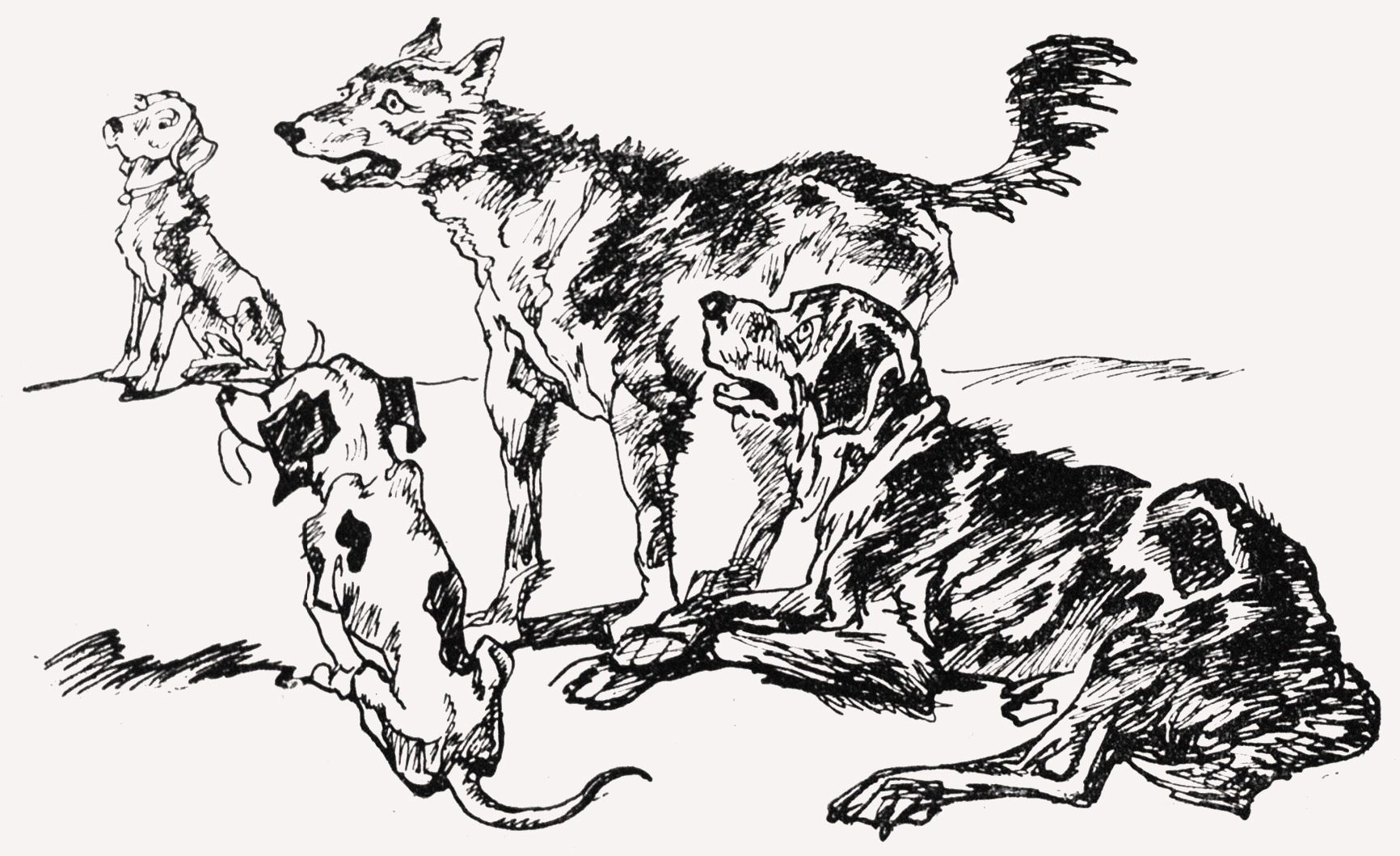 Но кто-то преграждает ему путь, обрывает веселую игру. Не понимая в чем дело, Дружок останавливается, на бегу упершись в землю лапами, прозрачная слюна повисает у края раскрытой пасти. Темный, хмурый неумолимый перед ним Нерон. Его морда широка, челюсти сжаты, глаза блестят тусклым красным пламенем, прокушенные изорванные уши прижаты к голому черепу, колюче щетинятся остатки шерсти на спине, и голый хвост подогнут под присевшие задние ноги.