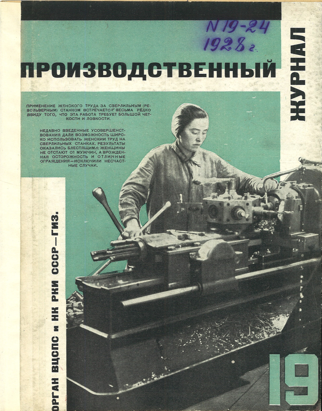 Обложка журнала «Производственный журнал», № 19