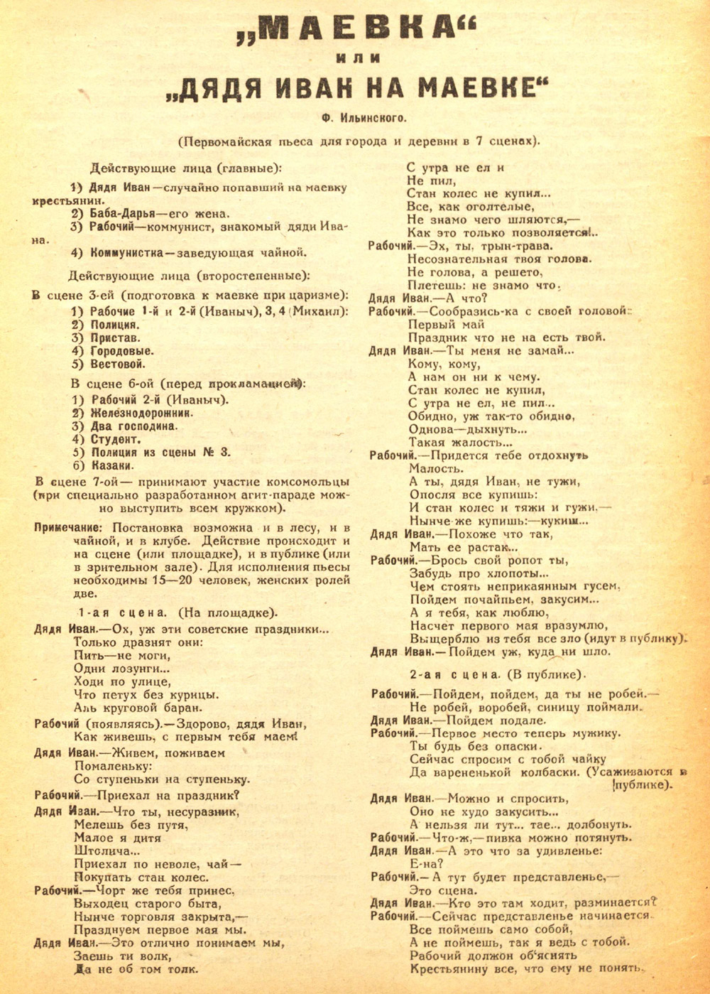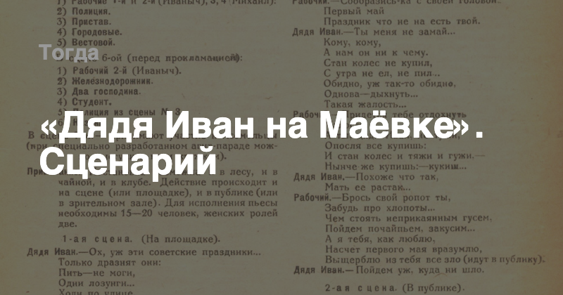 «Дядя Иван на Маёвке». Сценарий