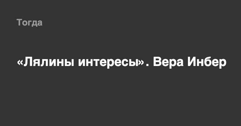 «Лялины интересы». Вера Инбер