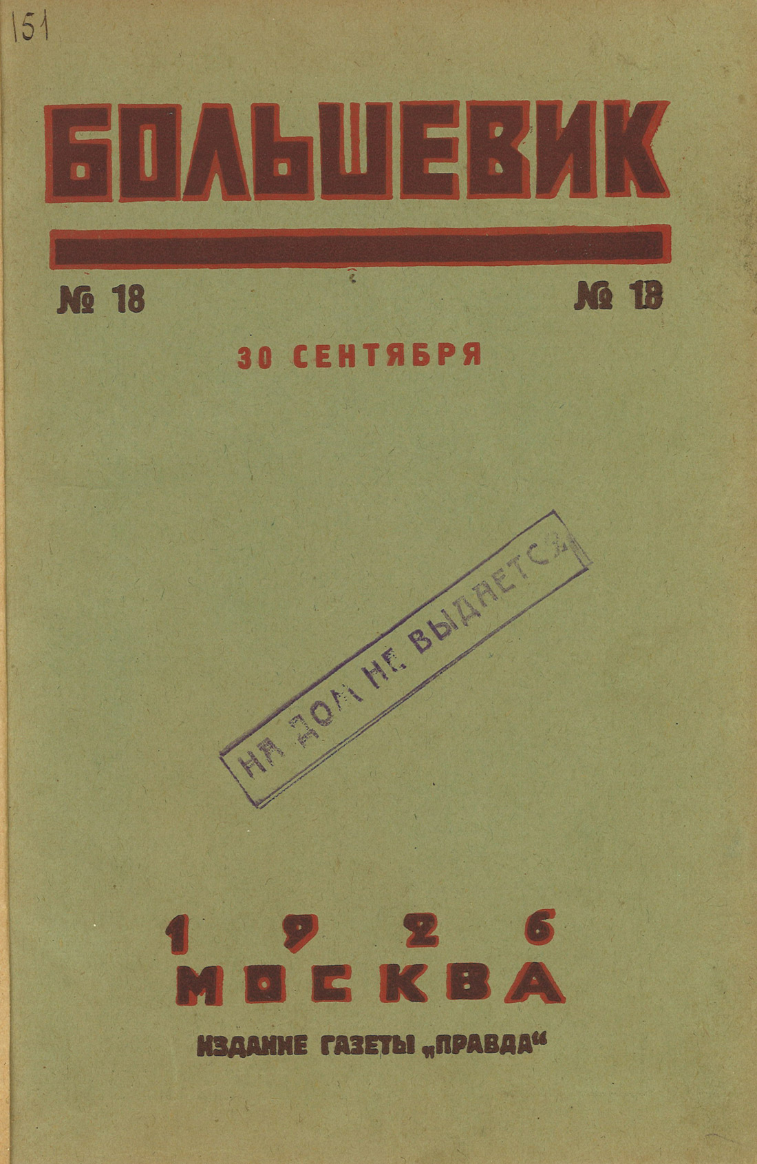 Обложка журнала «Большевик», № 18