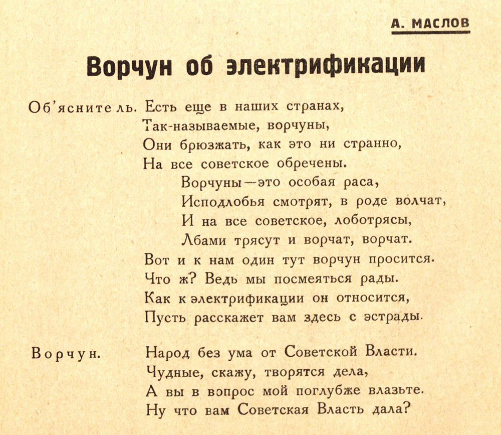 Автор: А. Маслов. Публикуется по журналу «Синяя блуза», № 42 за 1926 год.