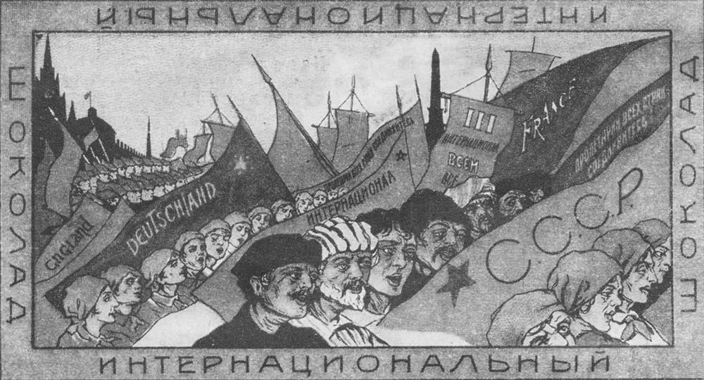 Революционная ломка старого быта, разумеется, нашла свое отражение и в названиях вновь выпускаемых кондитерских изделий и в их упаковке, от яркости и оригинальности которой во многом зависит успех товара у потребителя. Так, Моссельпромом выпущена карамель с названиями: «Красная Москва», «Юные пионеры», «Красный флот», «Наша индустрия», «Авиатор» и др.; шоколад назван «Интернациональным», «Аэронавтом», а драже (сорт очень мелких конфеток) назван «Октябрятами»; есть различные сорта конфет: «Октябрь», «Серп и Молот» и др. Сорта печенья названы: «Буденный», «Республиканское», «Красный моряк», «Май», «Коммуна», «СССР». Есть сливочные конфеты «Радий» и т. д.